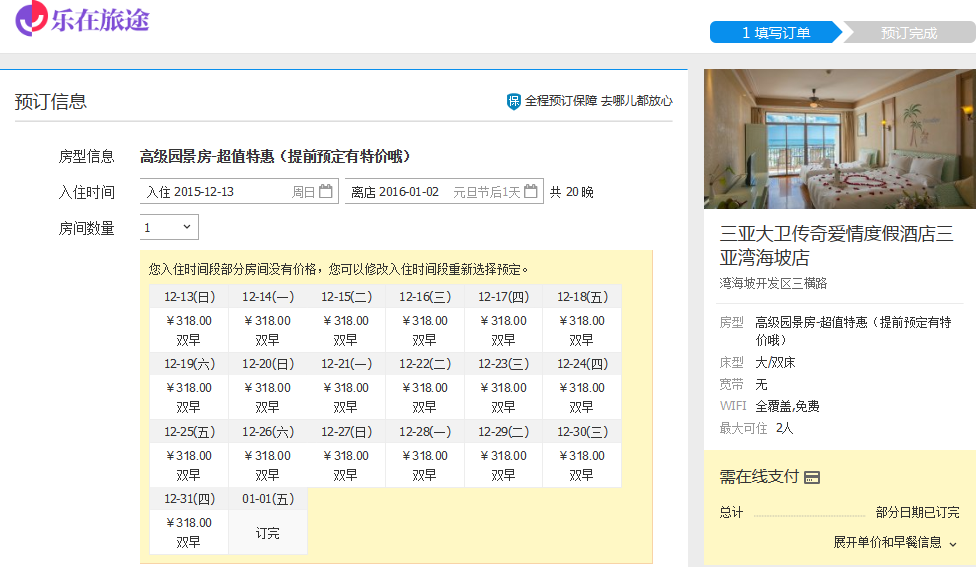 [四星级/高档] 三亚大卫传奇爱情度假酒店 价格比较分析 qunar285元胜 |